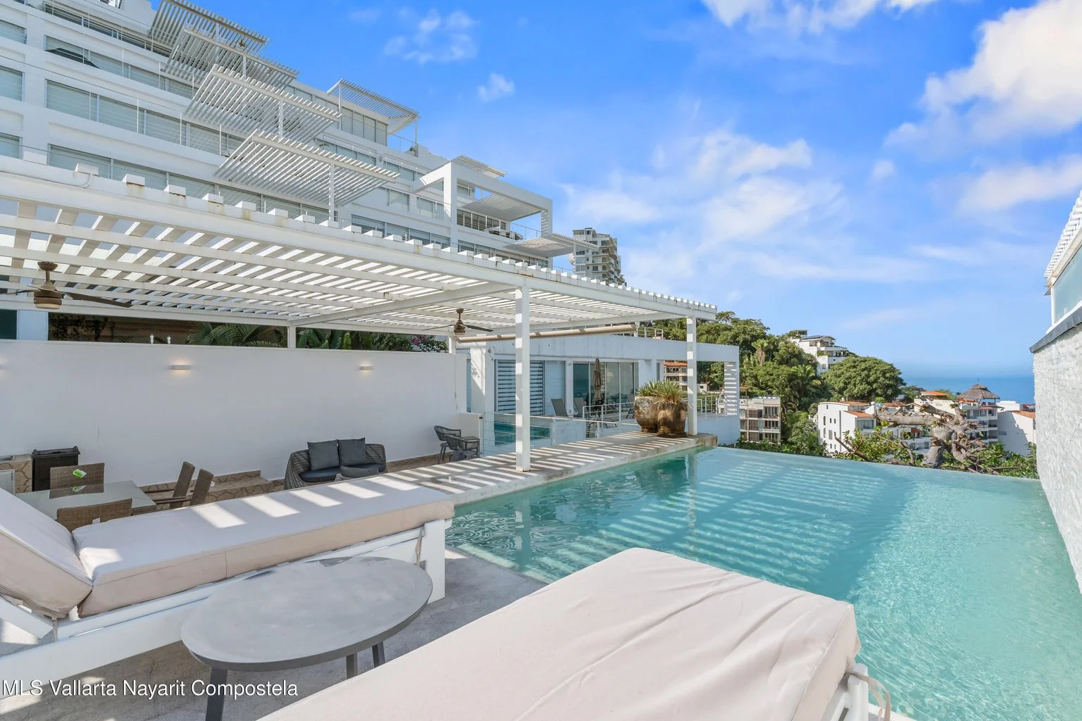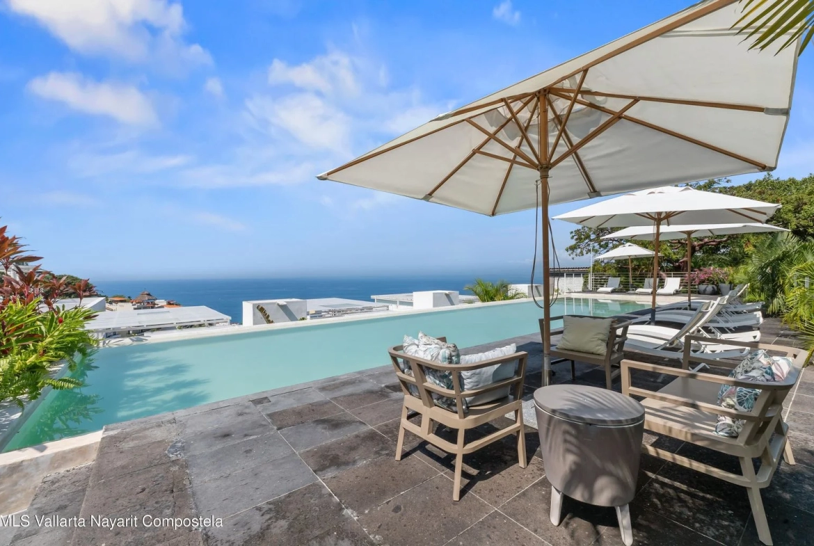 TH1 is a luxurious, newly remodeled townhouse boasting unparalleled ocean views just a 10-minute walk from Zona Romantica in Puerto Vallarta. With five bedrooms, five full bathrooms, and two half baths, it offers ample space for relaxation and entertainment. A private elevator ensures easy access to each of its four floors.Fully furnished with contemporary decor, features a spacious, modern kitchen and a dining area opening onto a breathtaking terrace. Its rooftop garden includes a private infinity pool and BBQ area, perfect for enjoying panoramic ocean views.Guests also have access to the building’s amenities, enhancing their stay. Whether relaxing by the pool or exploring Puerto Vallarta’s vibrant streets, offers an unforgettable vacation experience.